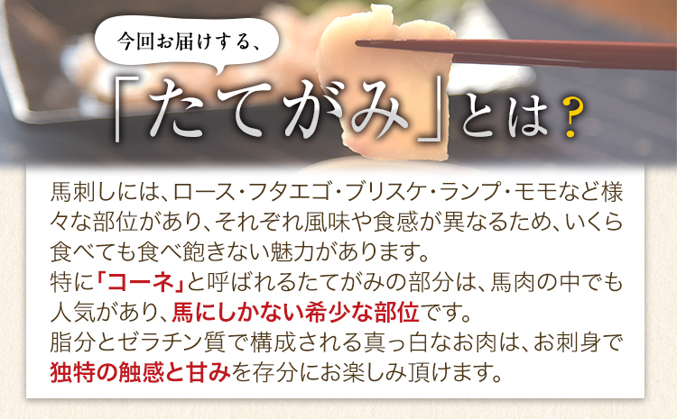 馬刺し 上赤身 ブロック 国産 熊本肥育 冷凍 生食用 たれ付き(100g×2)+たてがみセット(50g×1) 《90日以内に出荷予定(土日祝除く)》 肉 期間限定 絶品 牛肉よりヘルシー 馬肉 予約 平成27年28年 農林水産大臣賞受賞 熊本県長洲町