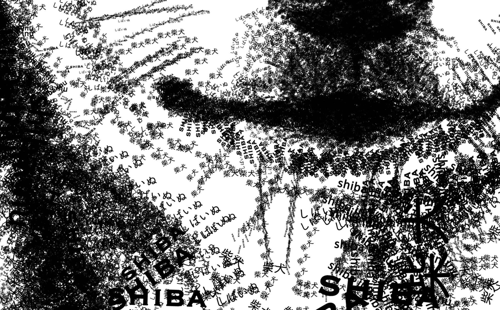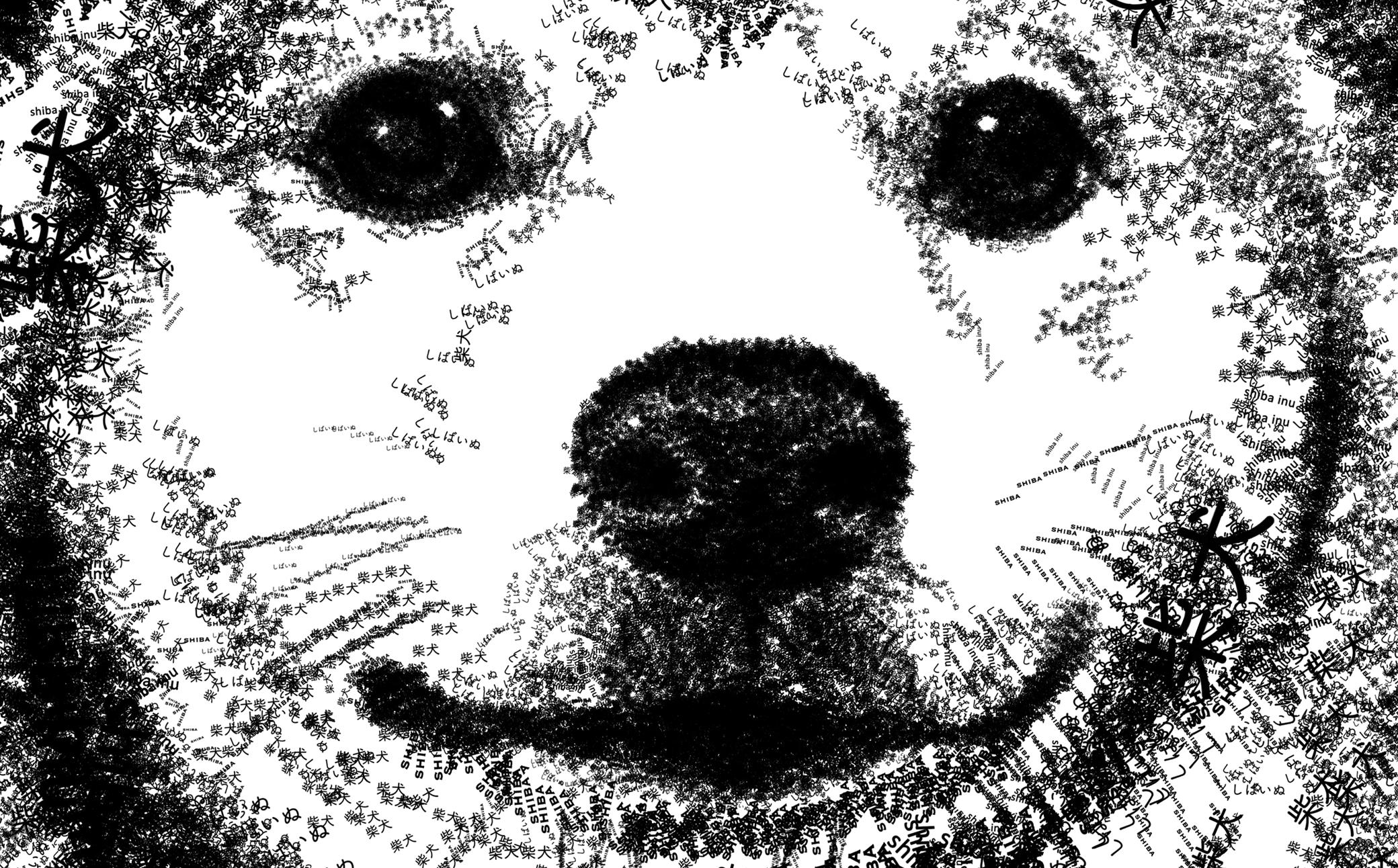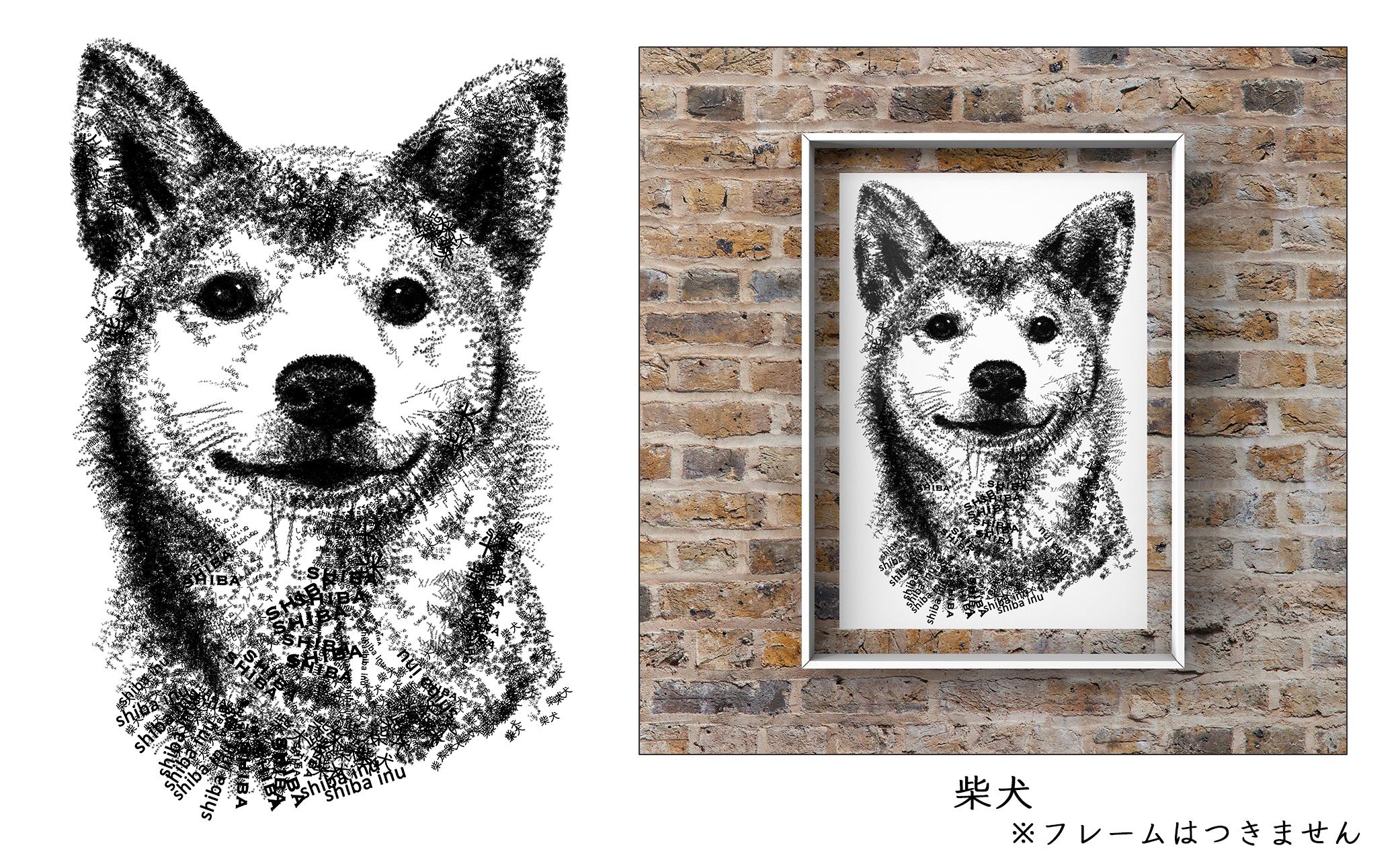 - 文字だけを使った絵画「文字ベースアート® (MojiBa®)」柴犬 A4サイズ
