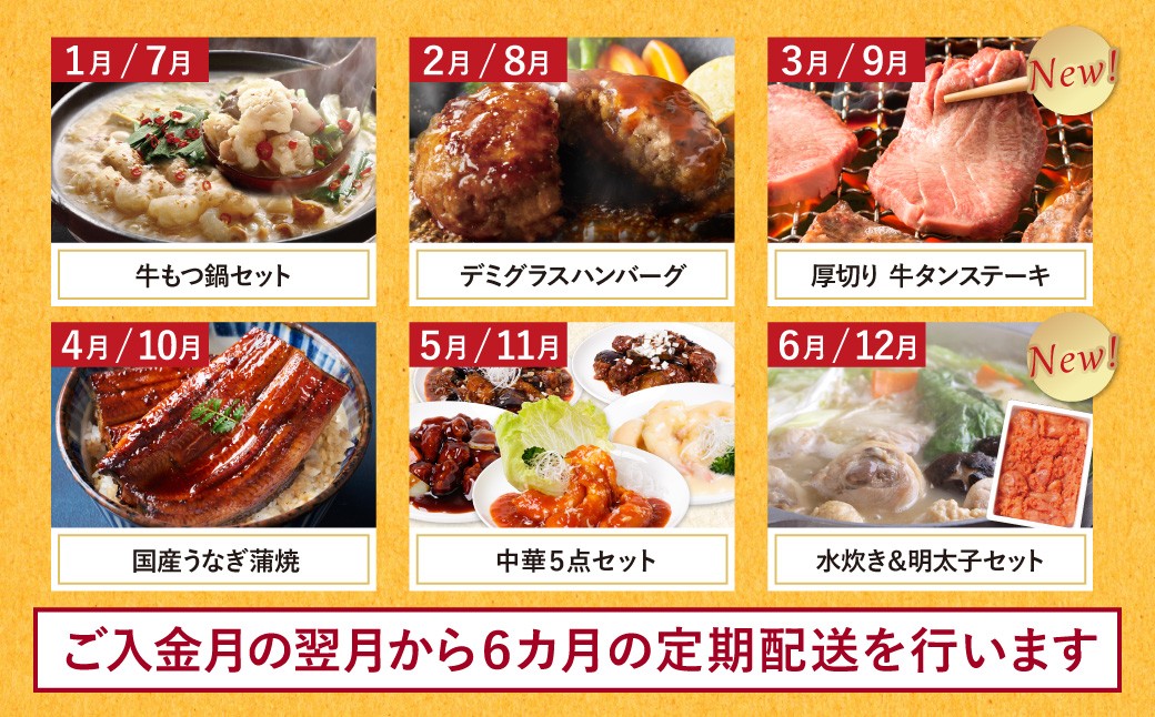 - 【定期便 全6~12回】若杉バラエティ定期便(毎月お届けコース)鍋 もつ鍋 水炊き 惣菜 中華 ハンバーグ 鰻 うなぎ 明太子 博多若杉厳選 人気 おすすめ 定期便 W61 ★レビューキャンペーン開催★