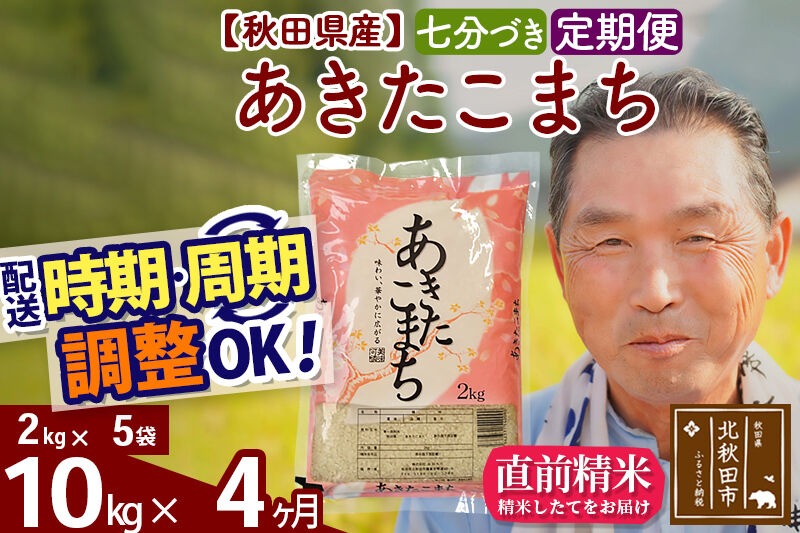令和7年産《定期便4ヶ月》秋田県産 あきたこまち 10kg【7分づき】(2kg小分け袋) 2025年産 お届け時期選べる お届け周期調整可能 隔月に調整OK お米 おおもり [おおもり 秋田 お米 あきたこまち 米どころ 東北 北秋田市 定期便 毎月お届け]|oomr-43104