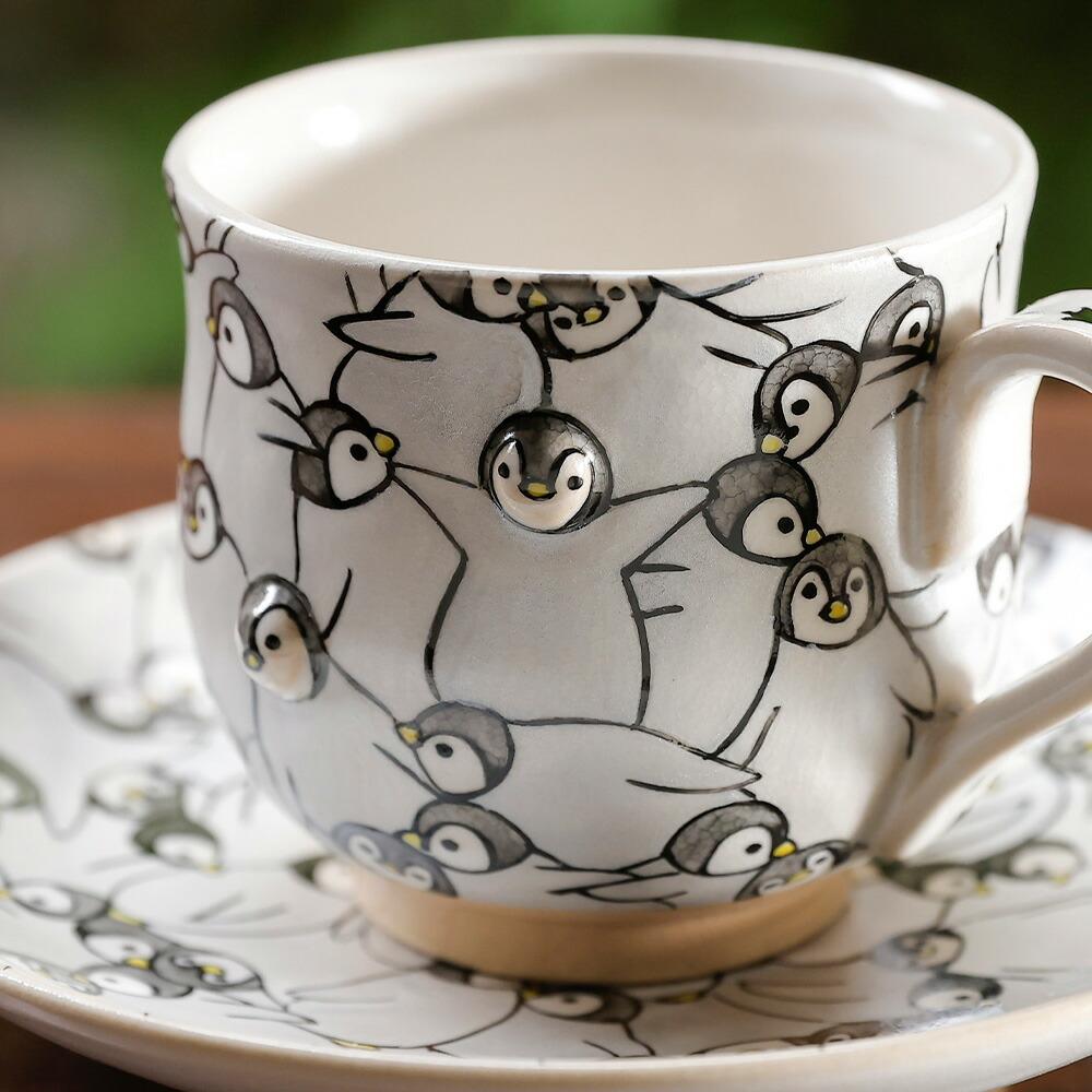 【ふるさと納税】【小手鞠窯】コーヒー碗皿(ペンギン尽くし ひな)|京都 食器 コップ 皿 人気[ 京都 京焼 清水焼 食器 コップ カップ 皿 人気 おすすめ 伝統工芸 お取り寄せ 通販 送料無料 ふるさと納税 ]