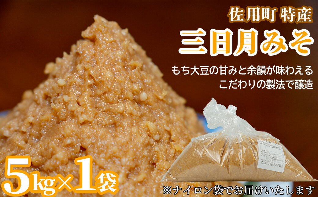 【ふるさと納税】甘みと余韻の三日月みそ 5kg 味噌 みそ ミソ もち大豆 天然醸造 発酵 調味料 味噌汁 みそ汁 兵庫県 佐用町