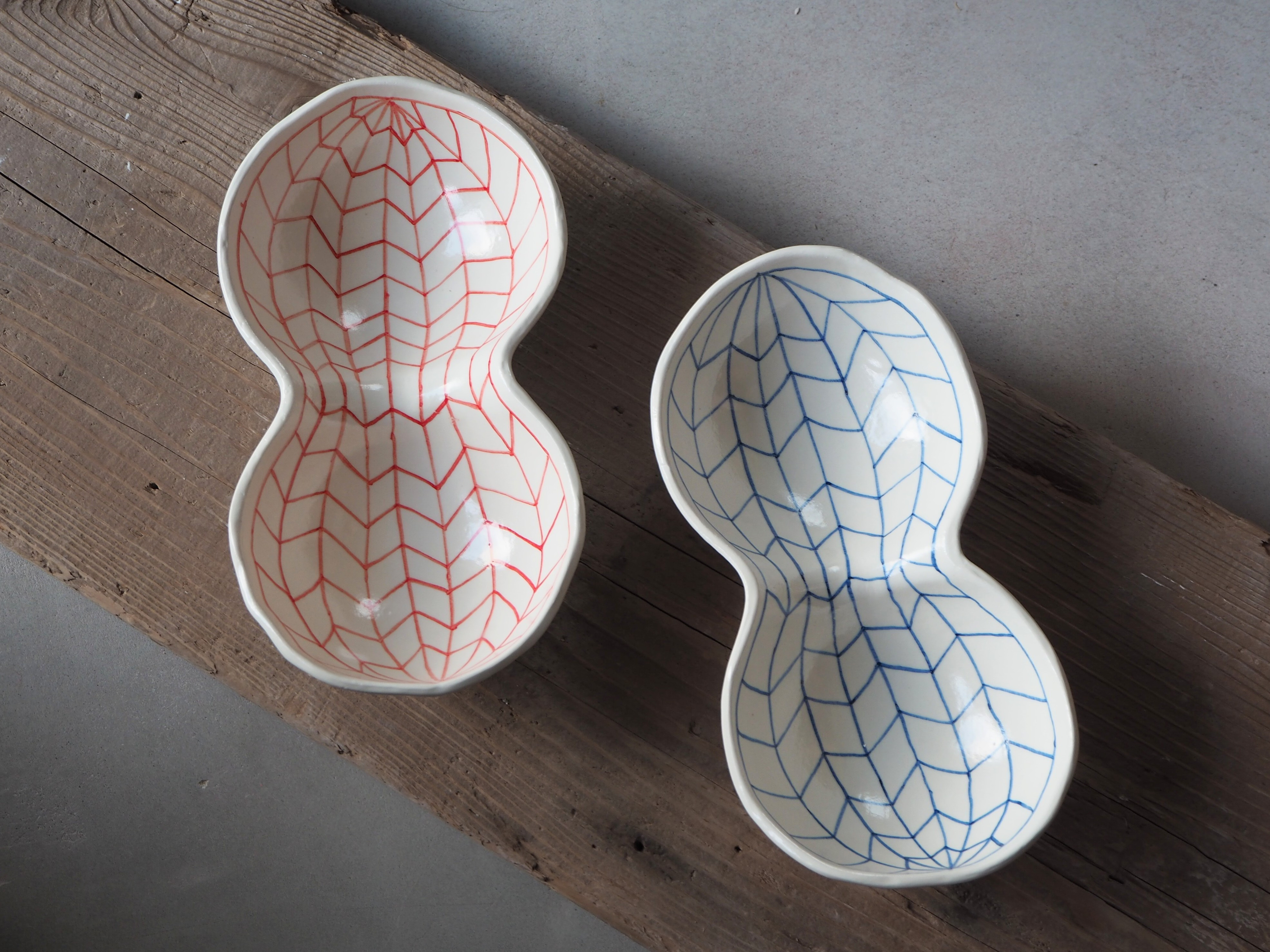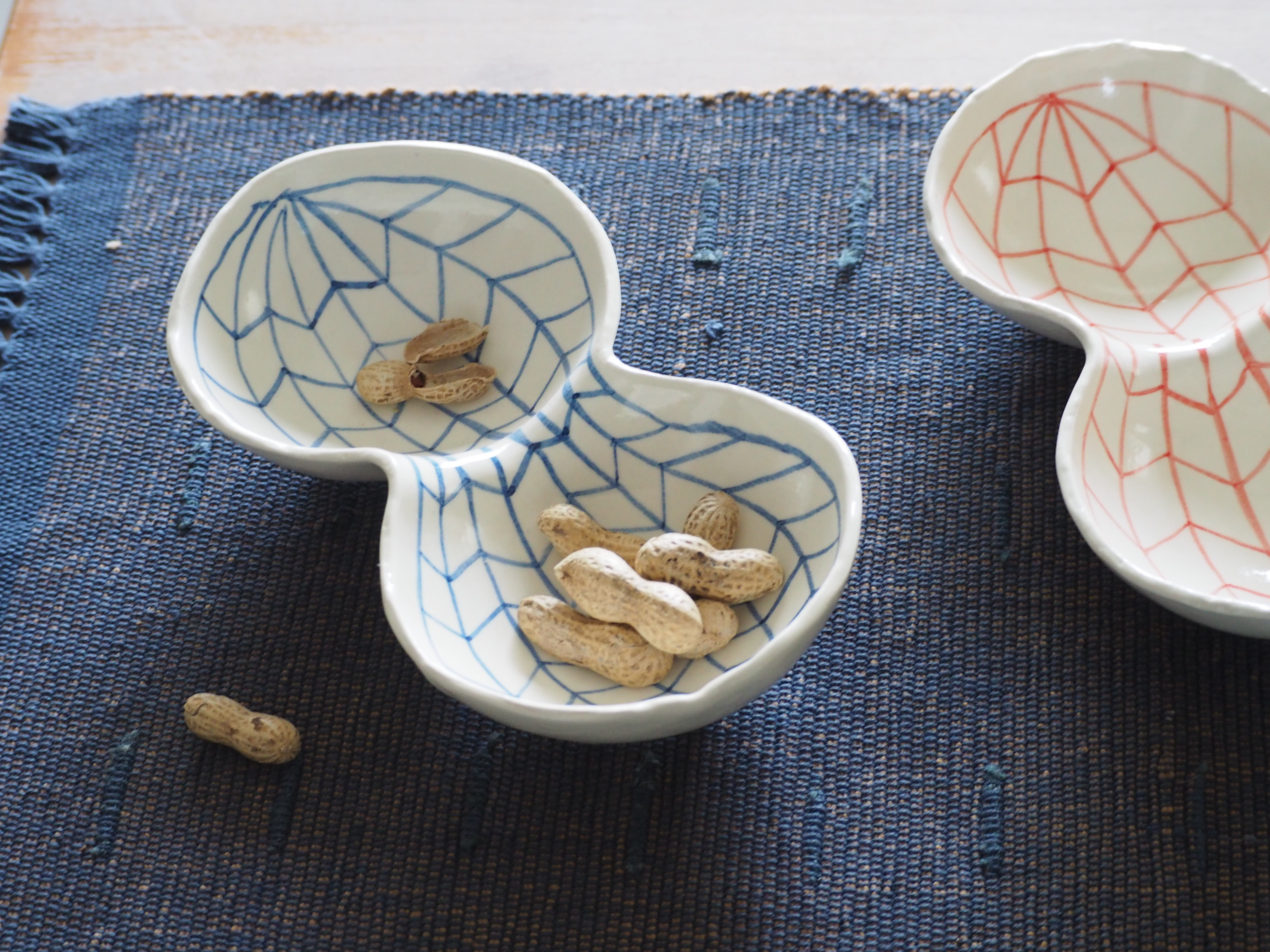 【まるふくオリジナル】有田焼 染錦花弁紋楕円皿(大)(小)2枚セット 手描き 和食器 取皿 ペア お正月 赤 青 A22-16