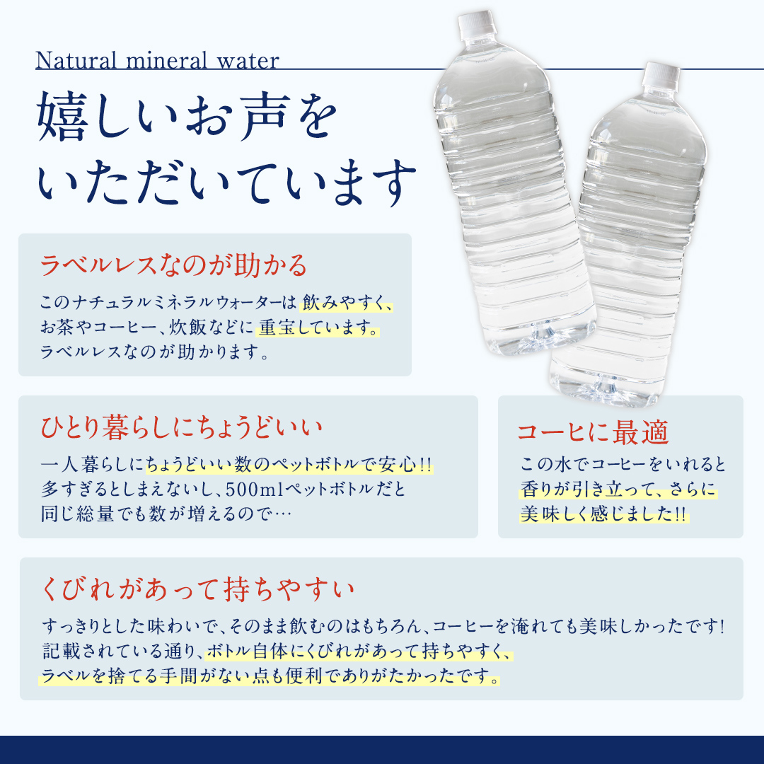- 【 最短発送 】嬬恋 の 天然水 ラベルレス ボトル 2L × 10本 入 × 2箱 水 ミネラルウォーター 2000ml 20本 飲料水 通販 定期 備蓄 ローリングストック 備蓄用 ペットボトル 防災 工場直送 箱買い まとめ買い 国産 防災 嬬恋銘水 日用品 [BA013tu]