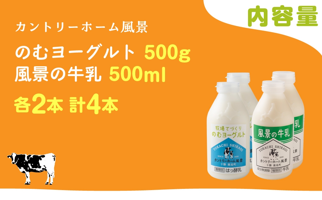 - のむヨーグルト500g 風景の牛乳500ml 各2本 【 ふるさと納税 人気 おすすめ ランキング 牛乳 ヨーグルト 無添加 てんさい オリゴ糖 濃厚 定期便 カントリーホーム風景 北海道 十勝 鹿追町 送料無料 】 SKB103