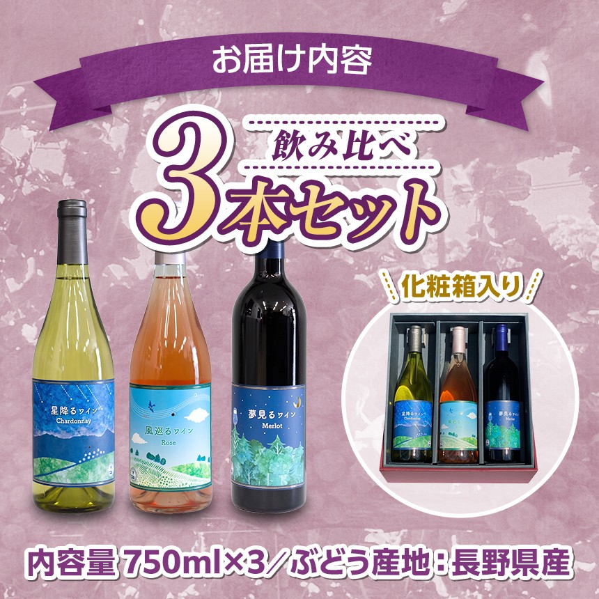 八ヶ岳はらむらワイナリー 飲み比べ 3本セット | 酒 ワイン 赤 白 ロゼ 赤ワイン 白ワイン アルコール シャルドネ メルロー ミディアムボディ カベルネソービニヨン カベルネフラン ソービニヨンブラン 飲み比べ ギフト 化粧箱 セット 信州 八ヶ岳 長野県 諏訪郡 原村