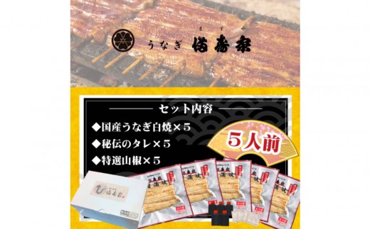 - 【満寿家】国産うなぎ白焼 5人前【11100-0146】