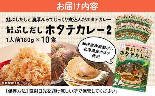 - 鮭ぶしだし ホタテカレー ( 10食 セット ) 北海道産 レトルト カレー 人気 おすすめ 国産 ホタテ ほたて 帆立 かれー れとると レトルトカレー レトルト食品 惣菜 便利 簡単 常温 常温保存 長期保存 保存食 備蓄食 ストック すとっく 常備 非常食 防災 鮭 さけ サケ しゃけ シャケ 鮭ぶし だし 出汁 ダシ ご当地 ご当地カレー 北海道 標津町