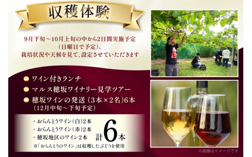 ワイン 収穫体験&ワインセット 3本×2名 計6本 ペア 2名様 参加券 ワイナリー [本坊酒造マルス穂坂ワイナリー 山梨県 韮崎市 20745174]