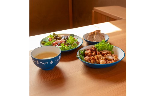 - 知床トコさんテーブルウェアシリーズ 小判ボウル皿 1枚 (M)<ブルー>