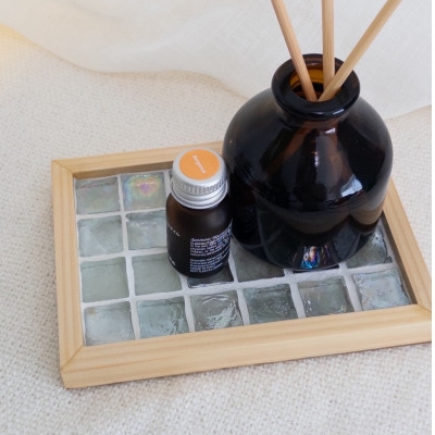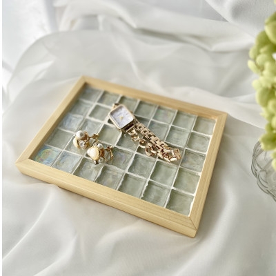 - ガラスタイルトレイ小・大各1枚セット(クリア・フラットフレーム)【1722440】