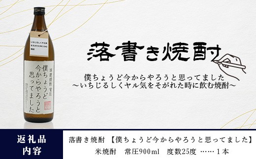 落書き焼酎 【僕ちょうど今からやろうと思ってました】 900ml 25度 球磨焼酎 米焼酎 焼酎 しょうちゅう お酒 酒 米 贈り物 ギフト 熊本県 熊本 015-0709
