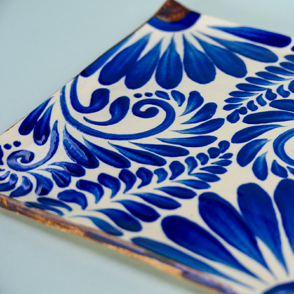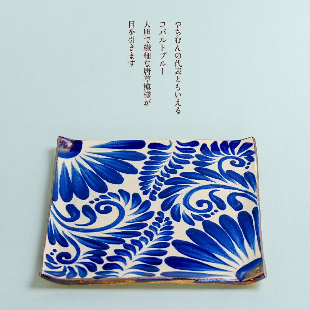 【ふるさと納税】コバルトブルー唐草模様 角皿1枚【尚工房】うるま 沖縄 おきなわ やちむん 焼き物 食器 大皿 角皿 皿 さら プレート 盛皿 陶器 工芸品 贈り物 お土産