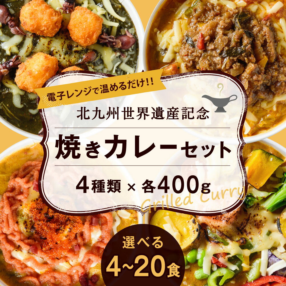 【ふるさと納税】北九州世界遺産記念 焼きカレーセット 4種セット 1食400g 選べる 4食 / 8食 / 12食 / 16食 / 20食 レンジ 簡単調理 お手軽 漆黒の黒鉄ー 燃える溶鉱炉 めんたい 野菜ソムリエ 北九州名物 冷凍 福岡県北九州市