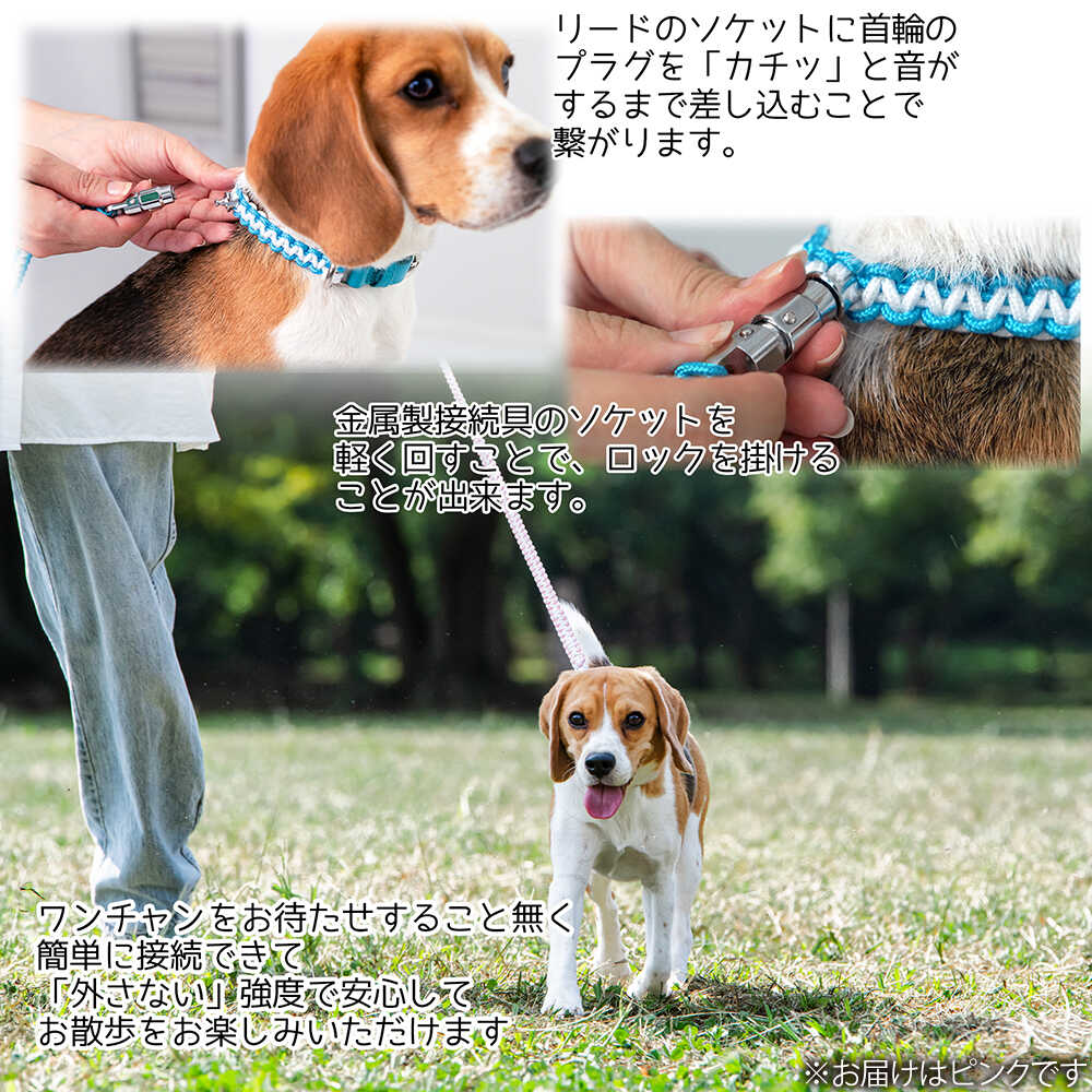 - 【ふるさと納税】ペット 犬の首輪&リードセット ピンク / 首輪 リード 散歩 ペット用品 犬用品 ペットグッズ 散歩グッズ ワンタッチ 着脱簡単 ロック付き 高耐久 おしゃれ 丈夫 カラフル 手作り 手編み パラコード 革 レザー / 大阪府藤井寺市/(株)池上金属製作所[BLBX001]