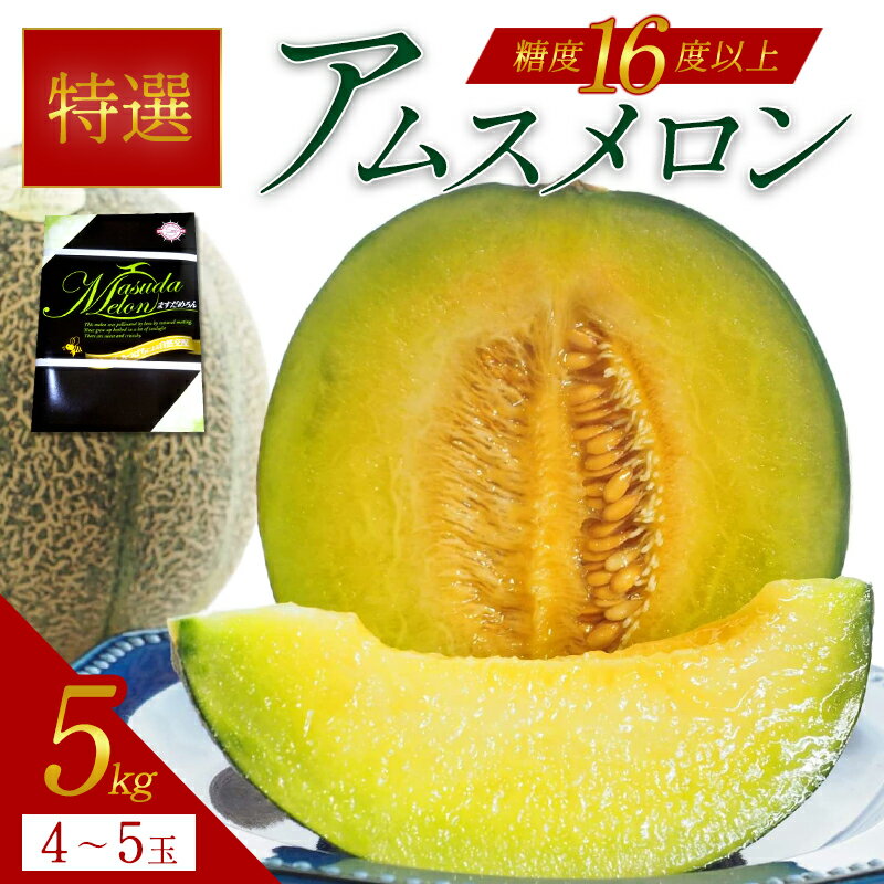 【ふるさと納税】特選 アムスメロン 5kg 4〜5玉 糖度 16度以上 高糖度 季節限定 期間限定 果物 フルーツ お土産 プレゼント 贈り物 贈答 ギフト ご褒美 贅沢 メロン