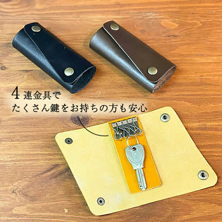 - 【ふるさと納税】キーケース キーケース 本革 レザー 革 メンズ レディース 天然皮革 選べる3色 ブラック チョコ マスタード 黒 茶色 黄色 上品 おしゃれ おすすめ ギフト 栃木レザー 受注生産