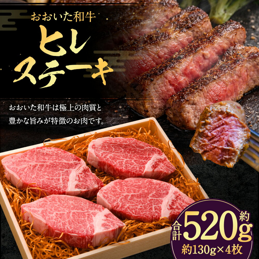 - 【ふるさと納税】おおいた和牛 ヒレステーキ 計約520g(約130g×4枚) 和牛 牛肉 お肉 ヒレ肉 赤身 霜降り ステーキ ギフト 贈り物 贈答 冷凍 大分県産 国産 九州 大分県 竹田市 送料無料