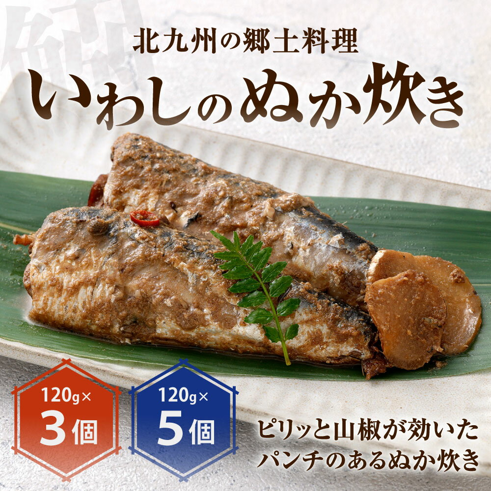 - 【ふるさと納税】いわしのぬか炊き 1個120g入り 選べる 3個 / 5個 鰯 イワシ おかず 惣菜 ぬかだき ぬか床 ぬかみそ 和食 北九名物 郷土料理 秘伝 冷蔵 国産 福岡県北九州市
