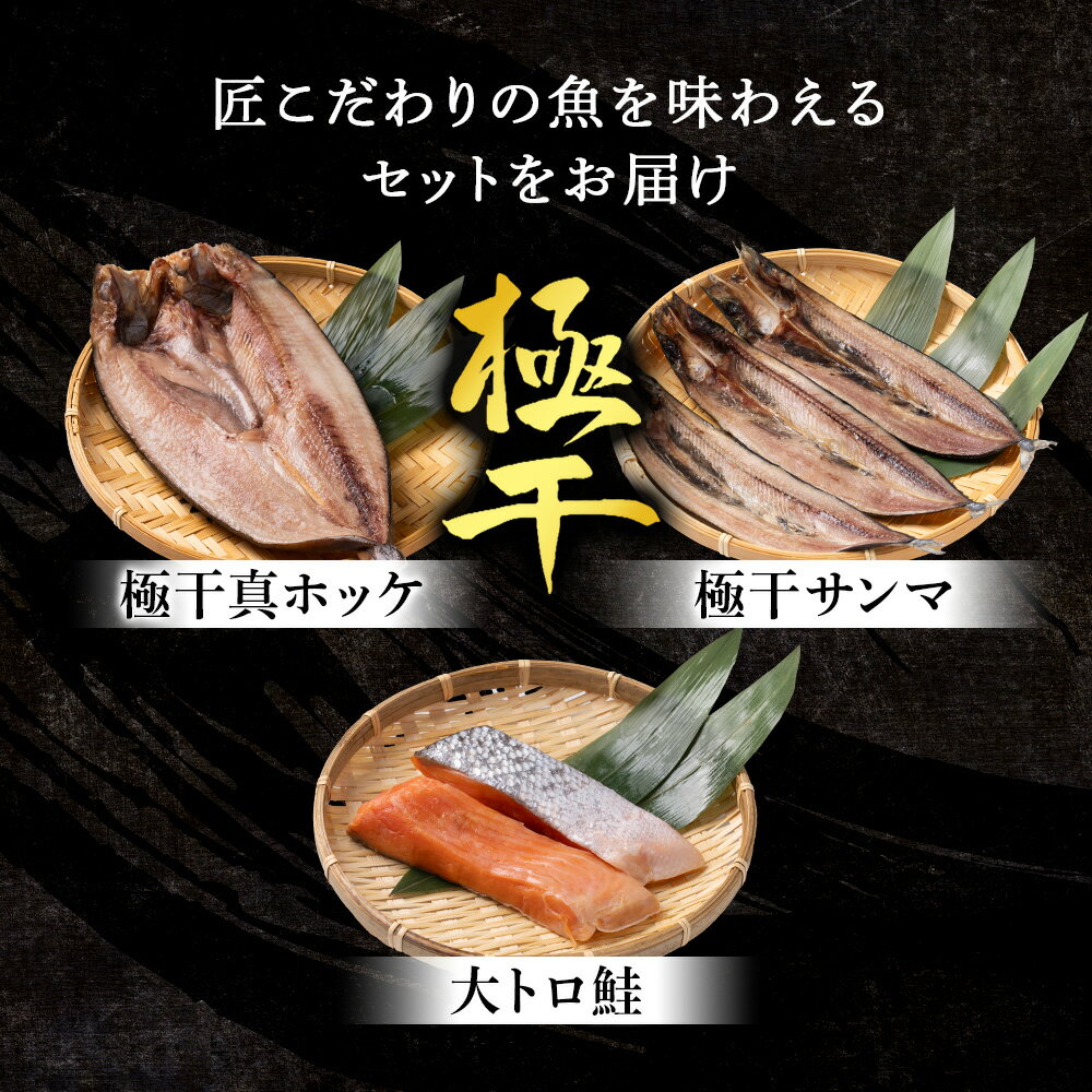 【ふるさと納税】【グランプリ受賞の真ほっけセット】 特大真ほっけ・秋刀魚・大とろ鮭 選べる各1枚〜3枚 各3枚〜9枚法華 さんま さけ ホッケ サンマ サケ 魚 肉厚 高温熟成 氷温 海風 熟成 北海道ふるさと納税 白老 ふるさと納税 北海道