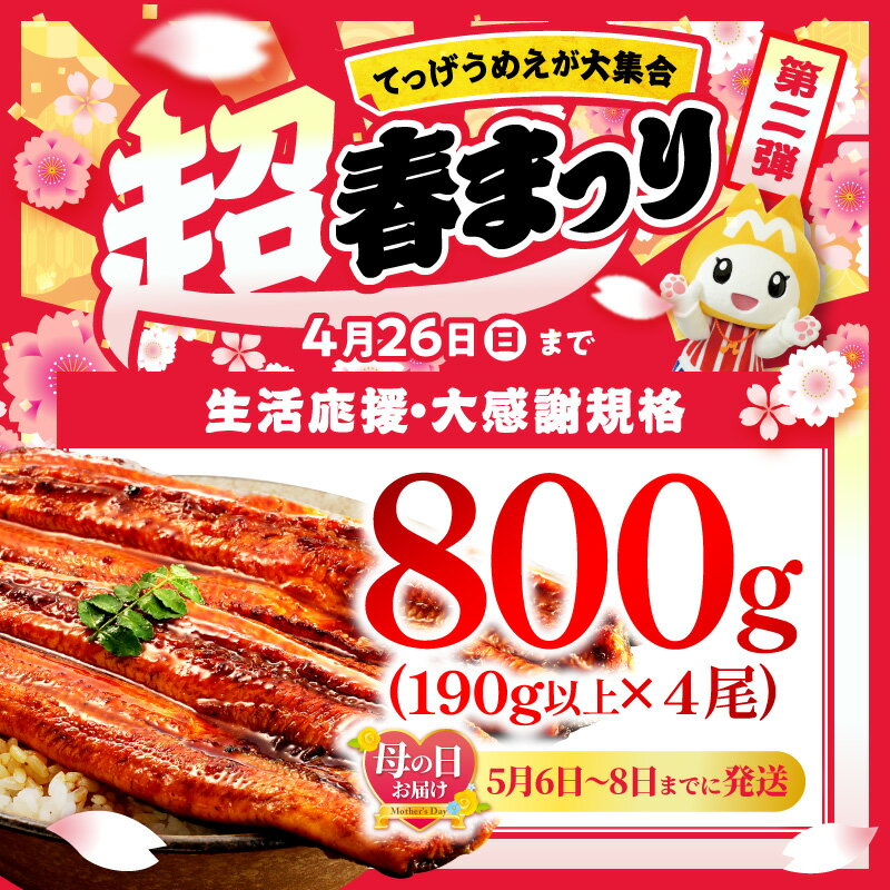 - 【数量限定】国産うなぎ蒲焼4尾 計800g以上 鰻蒲焼ウナギ蒲焼用たれさんしょうのセット