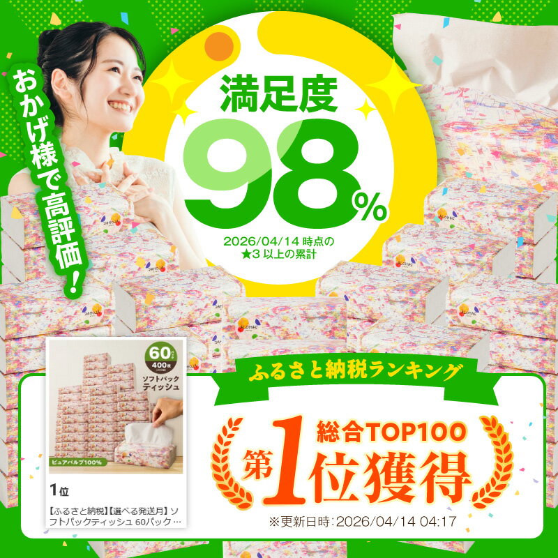 - 【ふるさと納税】楽天総合1位獲得 ソフトパックティッシュ 【選べる発送月】 60パック × 400枚 200組 箱なし 選べる トイレットペーパー 定期便 コンパクト ピュアパルプ 日用品 ストック ティッシュ まとめ買い 防災グッズ 2部門ランクイン 大阪府 泉佐野市 送料無料