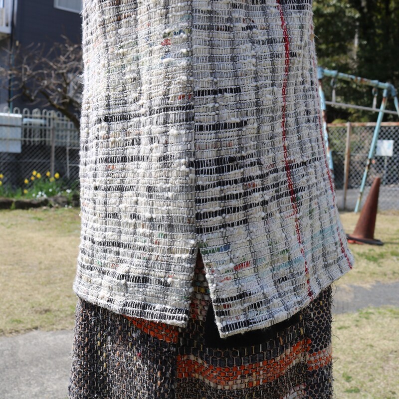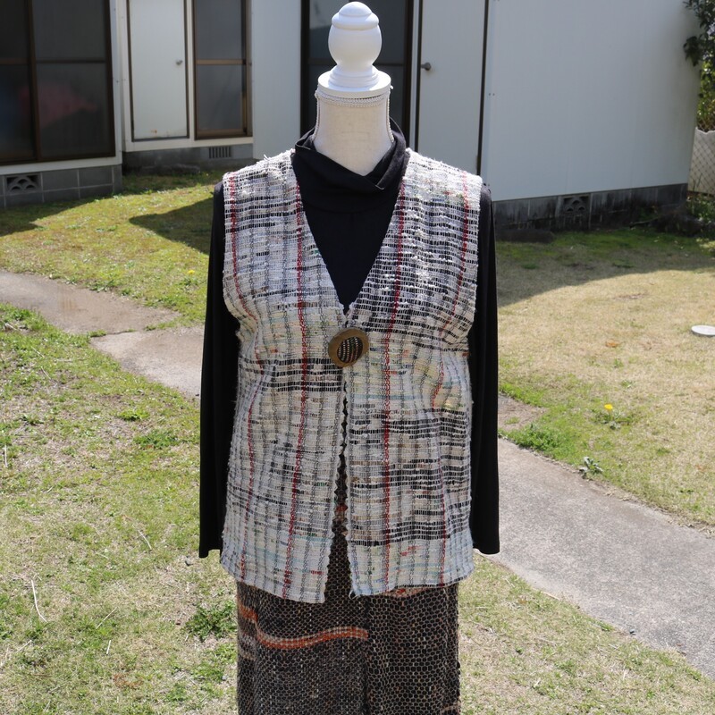 ベスト 裂き織り の 前開きベスト ブローチ チョイス限定 1点もの 裂き織りベスト 木製ボタン 服 洋服 着物 ハンドメイド おでかけ ファッション コーディネート 静岡県 藤枝市