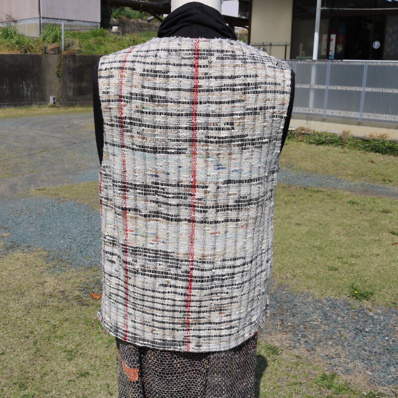 - ベスト 裂き織り の 前開きベスト ブローチ チョイス限定 1点もの 裂き織りベスト 木製ボタン 服 洋服 着物 ハンドメイド おでかけ ファッション コーディネート 静岡県 藤枝市