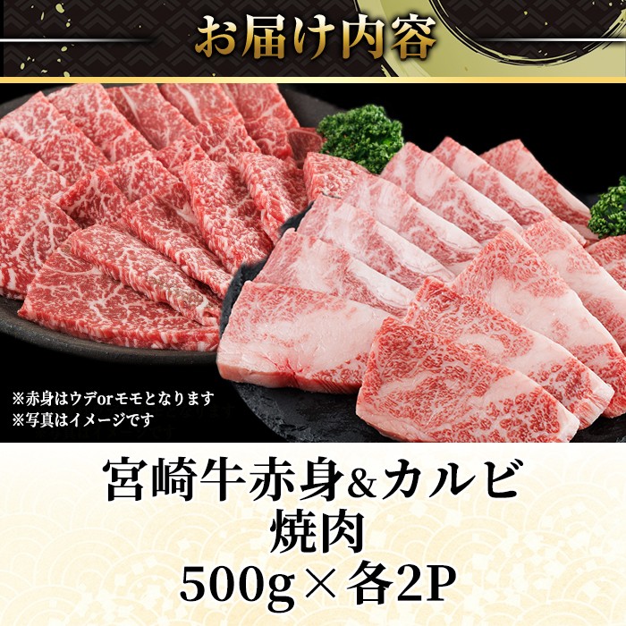 - 宮崎牛 赤身&カルビカット 焼肉 (合計2kg・500g×4) 焼肉 お肉 牛肉 黒毛和牛 宮崎牛 ブランド和牛 冷凍 国産 カルビ 赤身 宮崎県産 【YM-47】【YAMATO株式会社】