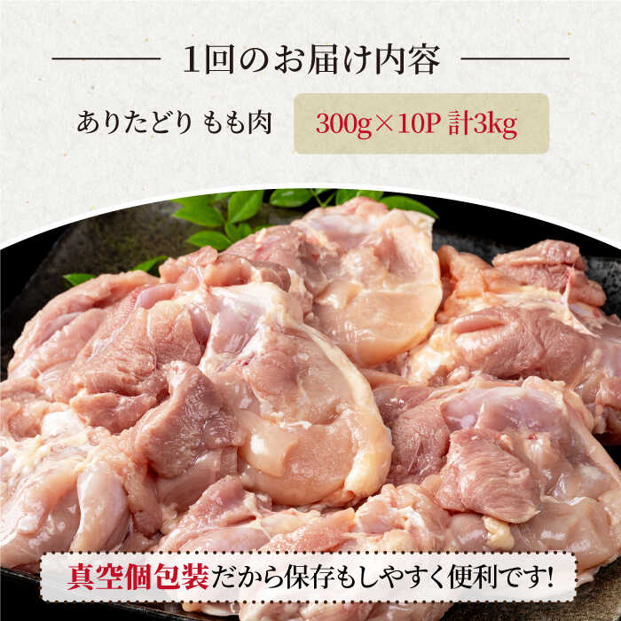 - 【ふるさと納税】【12回定期便】旨味ぎっしり定期便!大容量 ありたどり モモ肉 300g×10袋(計3kg)【株式会社いろは精肉店】とり 鶏肉 地鶏 もも タンパク質 鶏 佐賀県 白石 [IAG159]