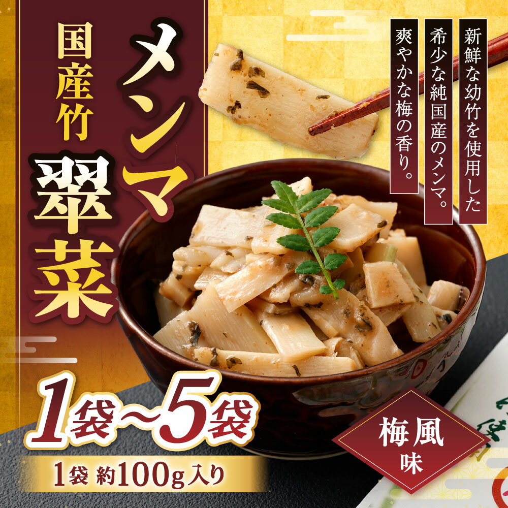 【ふるさと納税】国産竹メンマ「翠菜」梅風味 選べる 1袋 / 3袋 / 5袋 1袋約100g入り メンマ 合馬たけのこ 筍 タケノコ 麺麻 味付き うめ 梅味 国産 幼竹 希少 純国産 福岡県北九州市