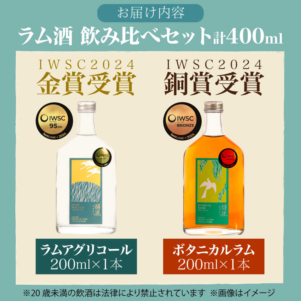 - 【ふるさと納税】【IWSC受賞】 ラム酒 飲み比べセット 2本 (各200ml) 計400ml / ラム酒 ラム 酒 らむ酒 らむ 酒 おさけ さけ お酒 飲み比べ セット 国産 小瓶 ミニボトル 送料無料 人気 贈答 贈り物 プレゼント 内子町 【天神村醸造所株式会社】[BKBT001] 32000 32000円