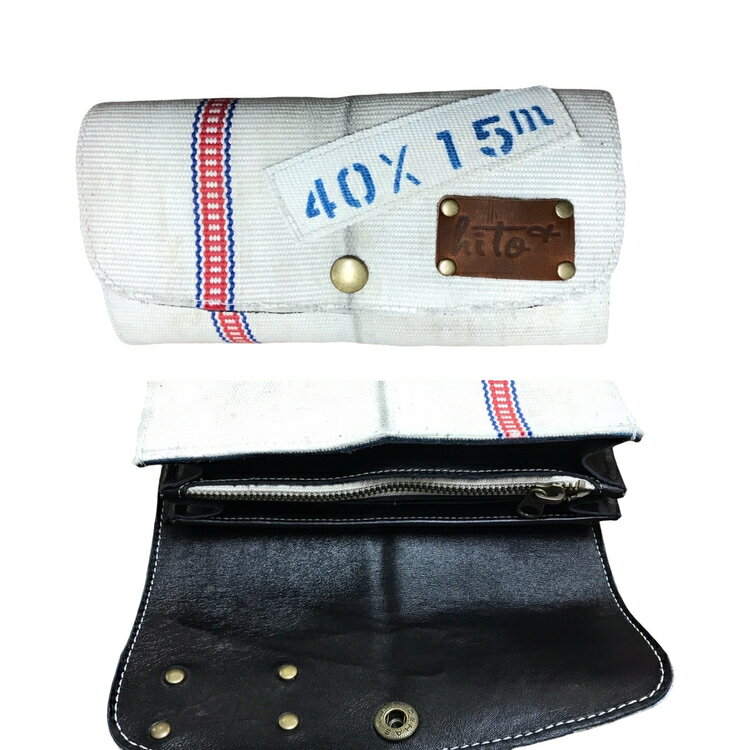 - 【ふるさと納税】消防ホース・アップサイクル財布[白系・ストライプなし]