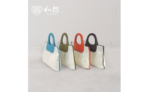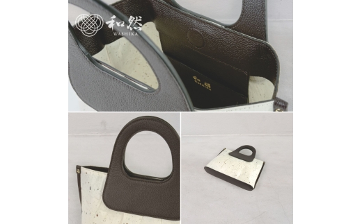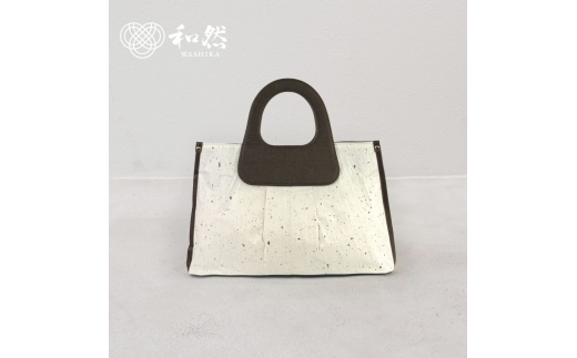 【和然WASHIKA】グラフィカルハンドバッグ 美濃の手漉き 和紙 × 本革 Meguri - 環 - Graphic Handle Bag カラー:ダークブラウン