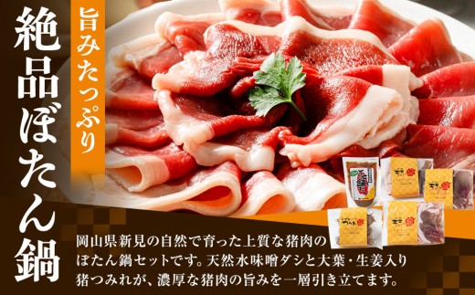 - おかやま 天然猪肉 ぼたん鍋 セット 3~4人前 つみれ入り (食猪しん房みなみ) 【 ぼたん鍋 しし鍋 味噌味 味噌 ぼたん 鍋セット 冷凍 真空 肉 猪 いのしし 猪肉 イノシシ肉 しし肉 ジビエつみれ ジビエ お鍋 鍋 なべ 寄せ鍋 おすすめ 岡山県 】