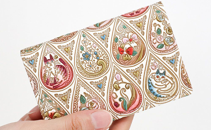 - パスケース 花と猫 ローズ 文庫屋大関 名刺入れ カードホルダー 名刺ケース 名刺ホルダー カード入れ 定期入れ 定期ケース 小物 革小物 革製品 革 民芸品 猫 猫グッズ 日本製 東京 東京都 墨田区 お届け:発送可能時期より順次配送