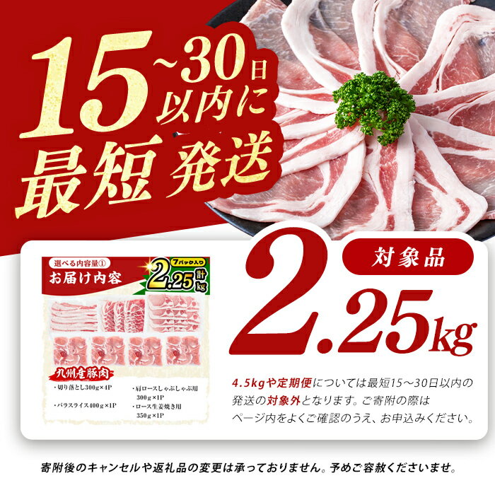 - 【ふるさと納税】【最短15日~30日以内発送】【訳あり】小分け・真空パック!九州産 豚肉 4種(計2.25kg~4.5kg) 豚肉 豚 国産 肉 ロース バラ モモ ウデ バラエティ セット 小分け 真空パック 【内容量が選べる!】【サンキョーミート】