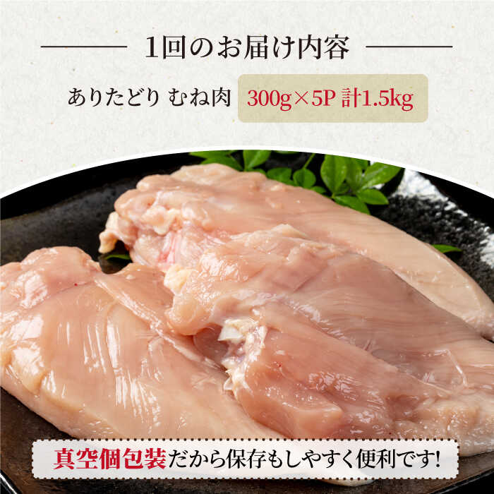 - 【ふるさと納税】【6回定期便】ヘルシー定期便!少量 ありたどり むね肉 300g×5袋(計1.5kg)【株式会社いろは精肉店】とり 鶏肉 地鶏 胸肉 むね肉 タンパク質 鶏 佐賀県 白石 [IAG149]