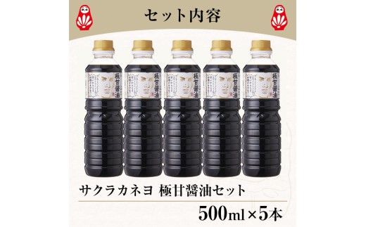 - 極甘醤油セット( 500ml×5本) 老舗吉村醸造の醤油 国産 九州 鹿児島産 九州醤油 天然醸造 しょうゆ 調味料 常温 常温保存【サクラカネヨ】【00-002-19】
