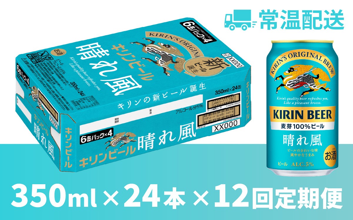 - 【定期便12回】キリンビール 晴れ風 350ml × 24本 × 12ヶ月 / キリン ビール 飲みやすい 新しい美味しさ 麦芽100% IBUKI なめらかな口当たり 24缶 定期便 晴れ風 はれかぜ 晴風 びーる 350ml 24本 24缶 きりん 麒麟 キリン KIRIN ハレカゼ 酒 おさけ お酒