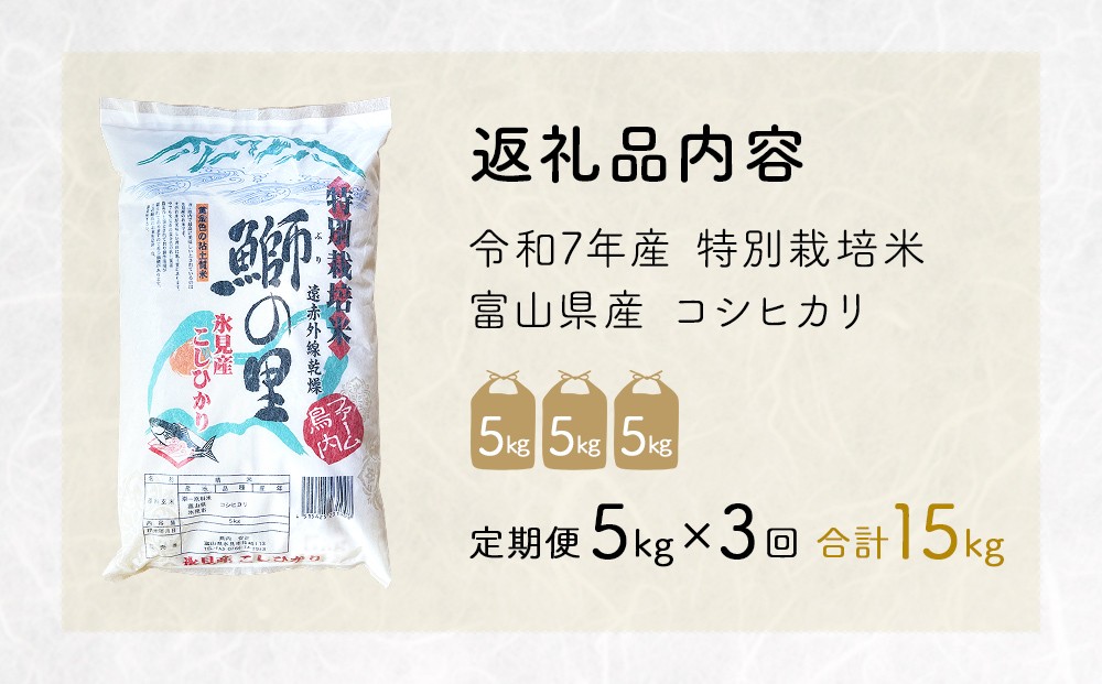 - 【3回定期便】〈令和7年産 特別栽培米〉 富山県産 コシヒカリ 鰤の里 白米 5kg | 富山県 氷見市