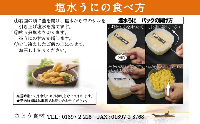 - 【令和8年発送先行予約】塩水うに 選べる 容量 80g×1パック 80g×2パック 180g×1パック 500g×1パック | 北海道 奥尻町 送料無料