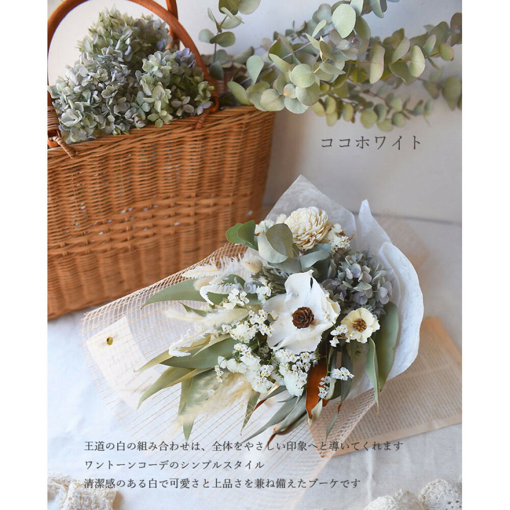 【ふるさと納税】【母の日】プレミアムドライフラワー・ブーケ ココホワイト<お届け日:2026年5/4~5/10 当店おまかせ >母の日カード付き【 母の日 ギフト アレンジ 花 贈り物 大阪府 門真市 】