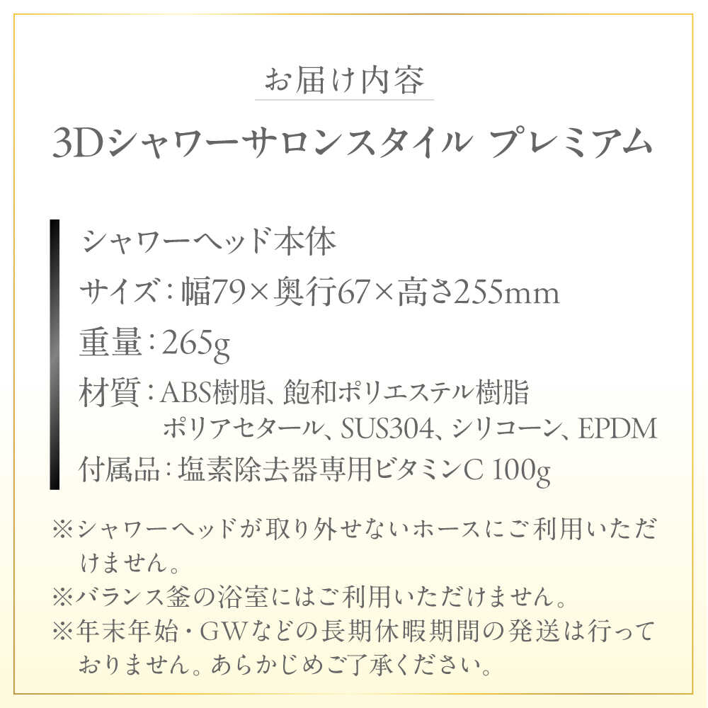 【ふるさと納税】シャワーヘッド 3Dシャワーサロンスタイル プレミアム / シャワーヘット シャワー 高水圧 水圧 強い 水圧アップ ビタミンC 塩素除去 節水 節水シャワー ヘッドスパ マッサージ 頭皮ケア 省エネ 軽量 日本製 / 大阪府藤井寺市/株式会社アラミック[BLAN011]