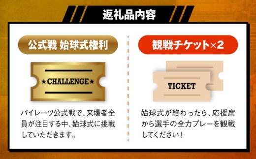 - 野球 パイレーツ公式戦始球式権(ペア始球式権利/観戦チケット付き)/ 観戦チケット1組2名 野球 試合 体験 応援 ファン イベント スポーツ 愛媛 始球式 観戦チケット パイレーツ 内子町 ふるさと納税 体験型 返礼品 チケット ペア 特別体験 四国 愛媛県 内子 お礼 【愛媛県民球団株式会社(愛媛マンダリンパイレーツ)】 [BKBD003]