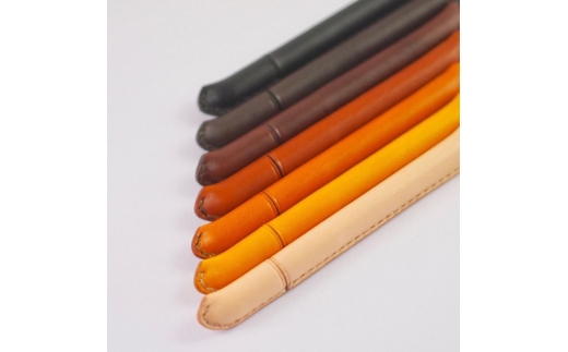 - 【オレンジ】革まきペン(ペンカバー)本革 ハンドメイド≪シンプル 牛革 手作り≫