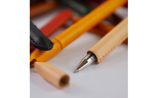 【オレンジ】革まきペン(ペンカバー)本革 ハンドメイド≪シンプル 牛革 手作り≫