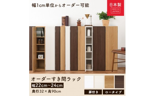 - 【完成品でお届け】オーダーすき間ラック〔幅23cm・扉右開き・ロータイプ〕(ホワイトウッド)すき間ラック 収納棚 扉付き スリム 約 奥行32 高さ90 ロータイプ オーダーラック キッチン AKANBE400082-23R-WWO