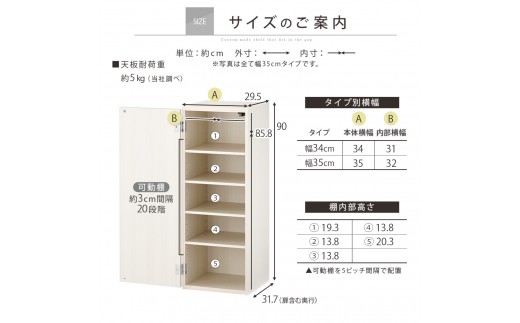 - 【完成品でお届け】オーダーすき間ラック〔幅34cm・扉右開き・ロータイプ〕(ホワイトウッド)すき間ラック 収納棚 扉付き スリム 約 奥行32 高さ90 ロータイプ オーダーラック キッチン AKANBE400086-34R-WWO