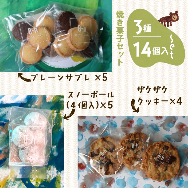 焼き菓子 詰め合わせ ギフトボックス (M) 3種 14個入り クッキー セット 着色料 保存料 不使用 お菓子 おやつ 焼き菓子 スイーツ sweets サブレ スノーボール プレゼント 贈り物 贈答用 ギフト 可愛い おしゃれ アート 就労支援 就労継続支援B型 NPO エシカファーム 静岡県 三島市